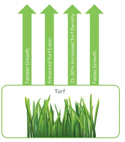Sod and grass: became 3–4 shades darker, ideal for golf courses.